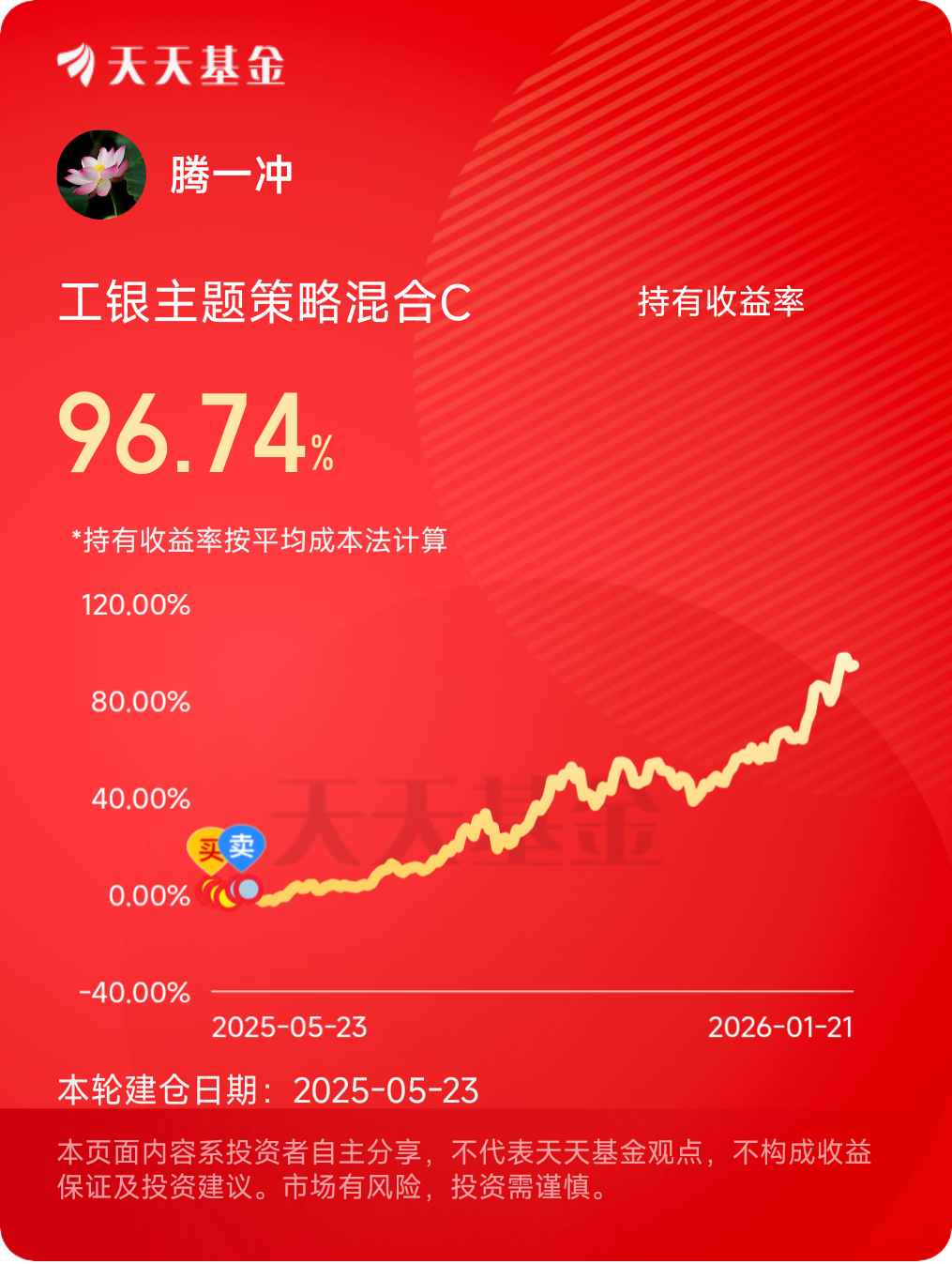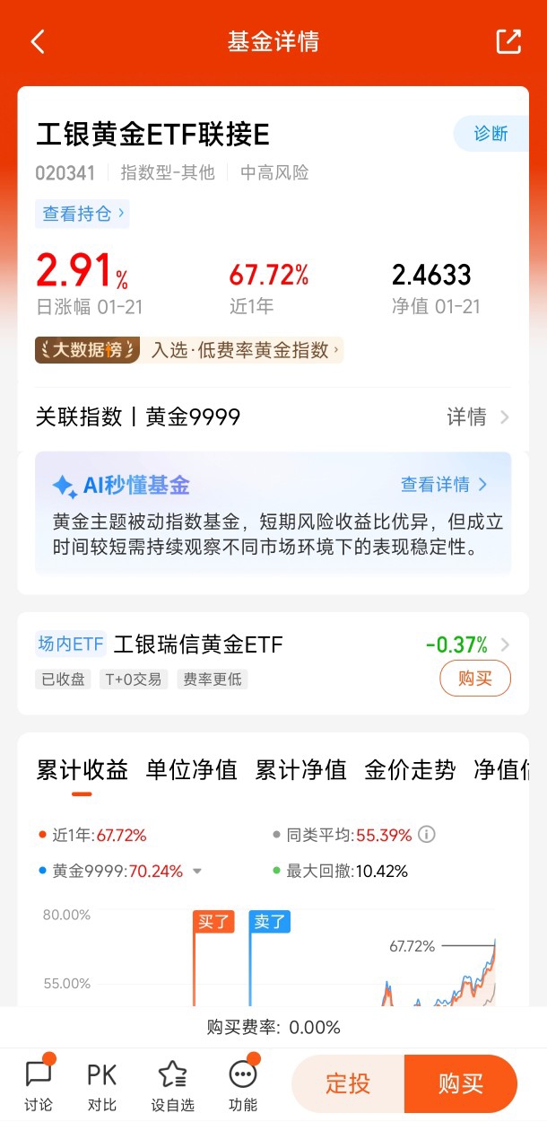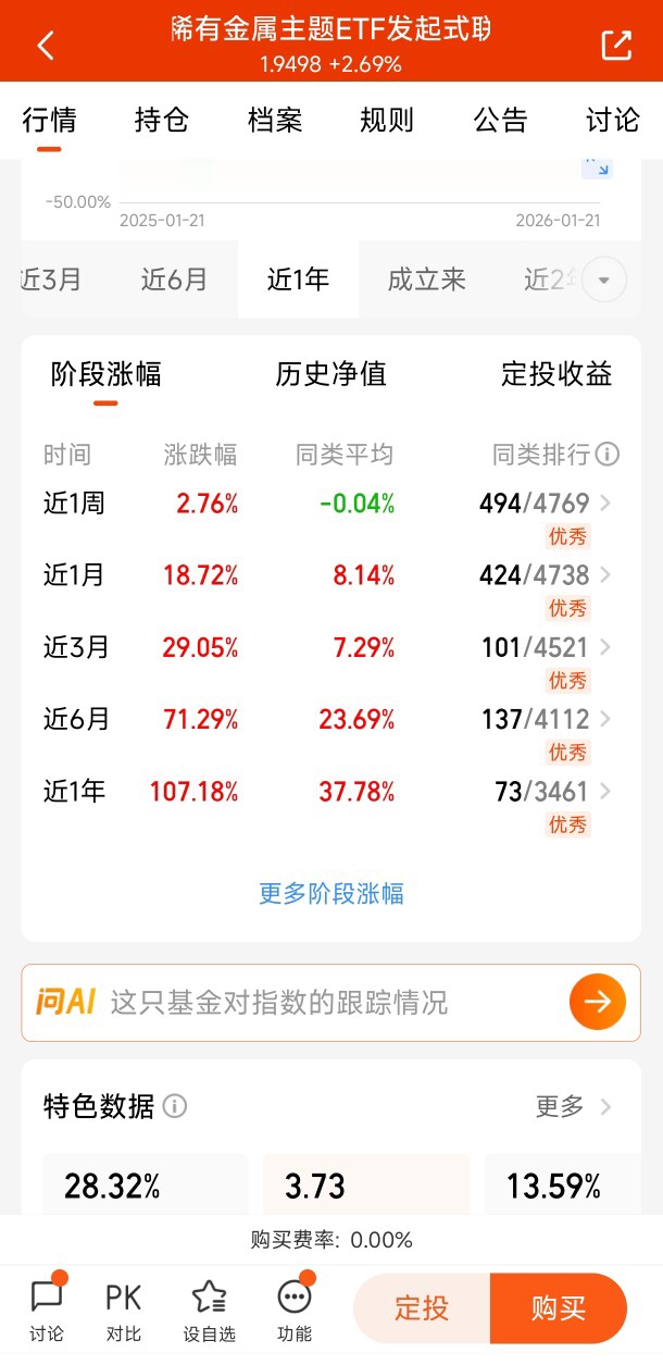 结果证明,这个选择简直比我选对象的眼光还要准!截至2026年1月21日,该基金近一年收益率高达107.18%,近一月涨幅18.72%,今年以来的涨幅也达到13.51%。这样的业绩表现,不仅让我轻松跑赢了通胀,甚至超越了不少专业投资者的收益。