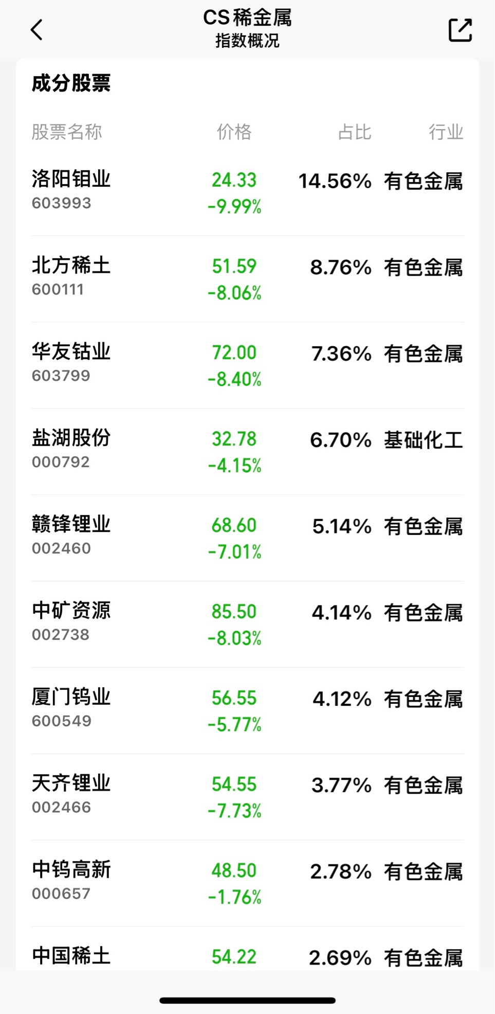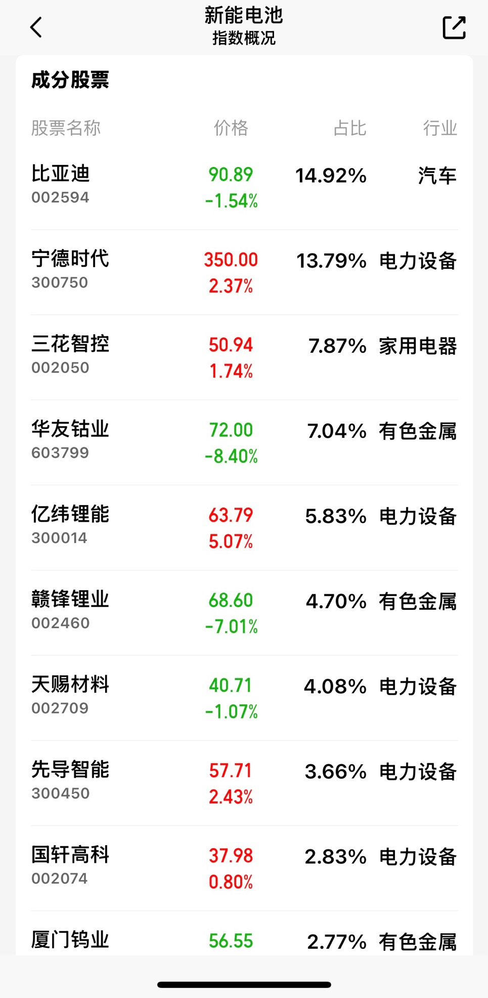 旗下的个股主要是有色金属,包括北方稀土、华友钴业、盐湖股份、中国稀土等,其中稀土在我国战略性布局中具有重要优势,赣锋锂业和天齐锂业则是新能源汽车锂电池的上游供应企业;