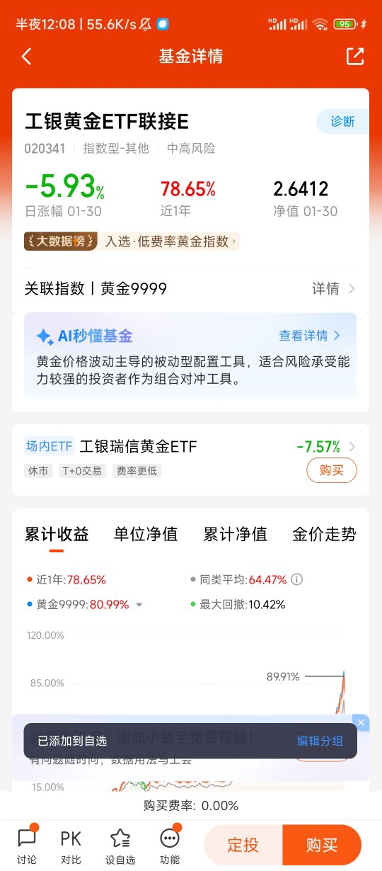 最后,C类份额优势明显,适合灵活配置。作为发起式联接C类基金,该产品无申购费,持有7天以上免赎回费,交易成本更低,适合投资者根据市场行情灵活调整仓位,无论是中长期持有分享行业增长,还是短期把握波段机会,都具备较高的性价比。