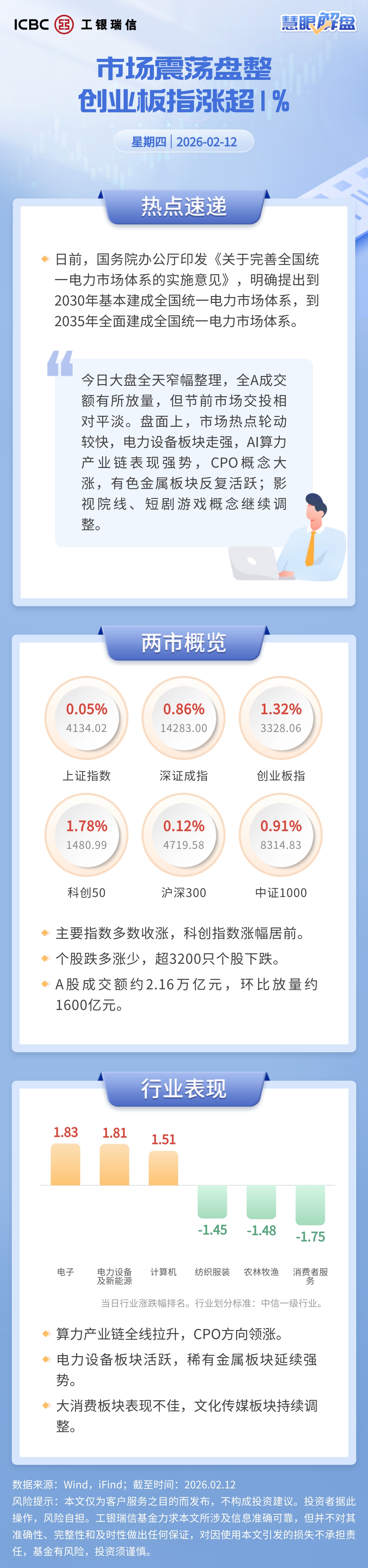 【慧眼解盘】市场震荡盘整 创业板指涨超1%