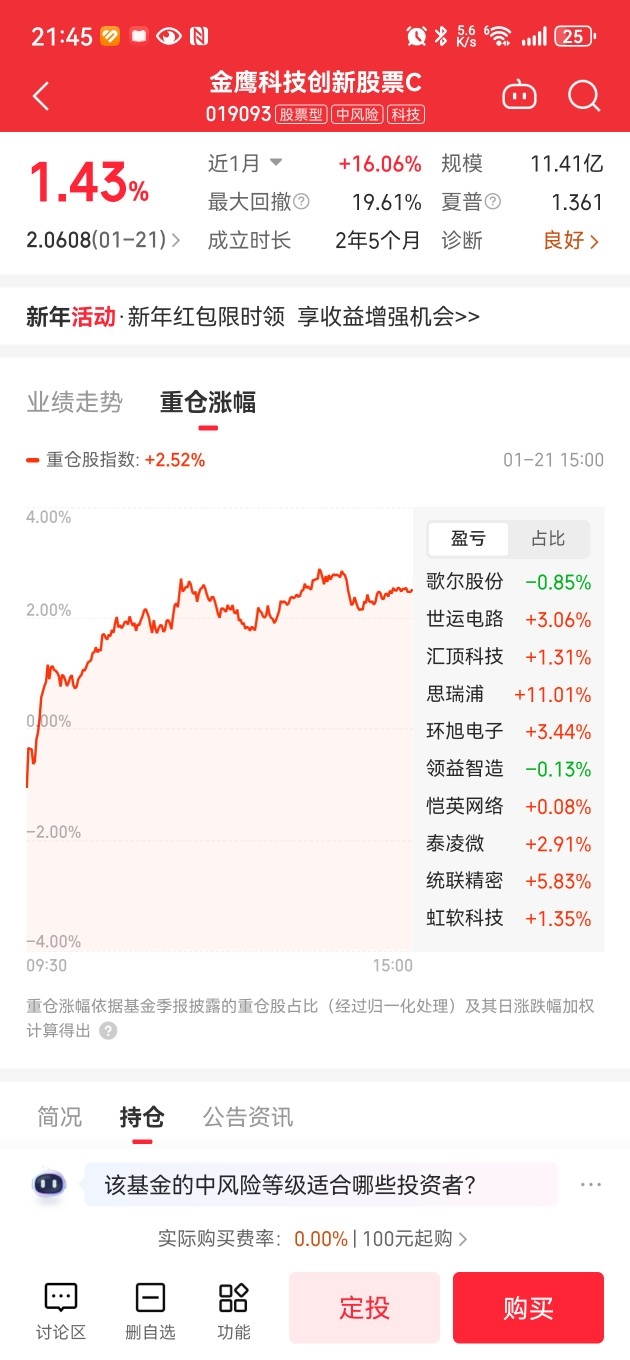 $金鹰科技创新股票C$涨成这样,收益才1.42?这坑的吗