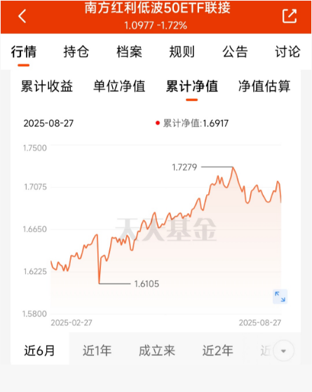 行情好时,人们容易忽略风险。$南方红利低波50ETF联接C$(008164)通过量化模型筛选成分股,注重质量与分红的平衡,这种策略在市场波动加大时,其防御性价值可能会得到更多体现。历史数据表明,在市场回调期间,此类策略通常展现出较好的抗跌性。拥有一部分防御性资产,是对投资组合负责的表现。#八月基金投资策略#