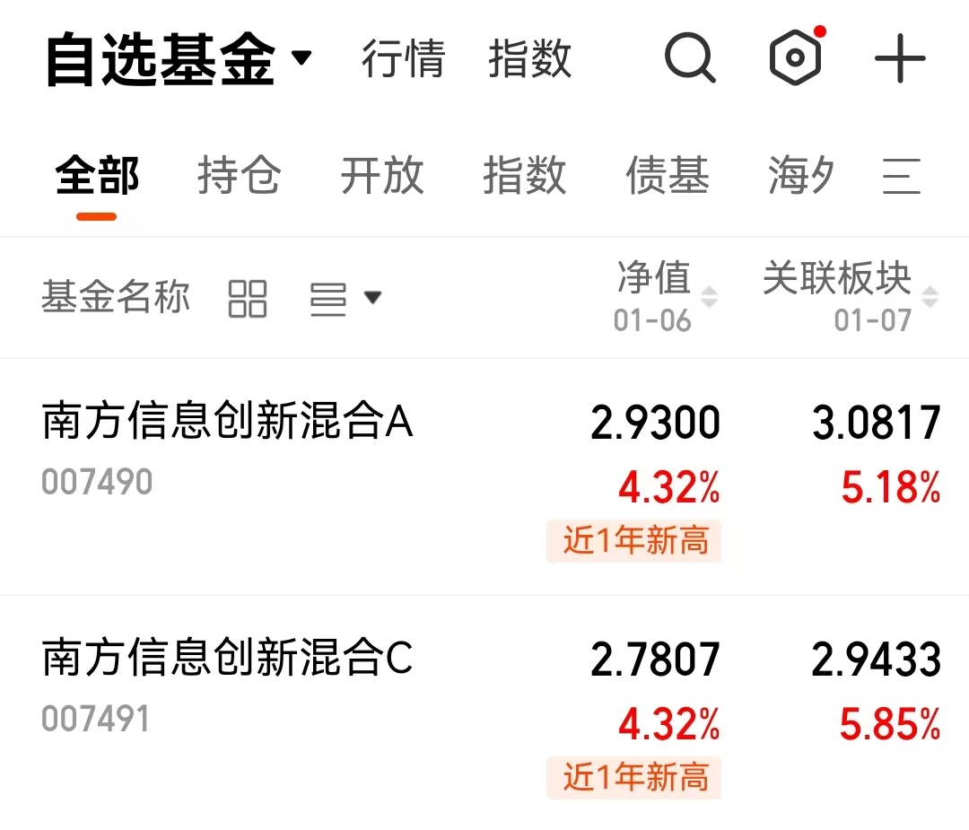 在这么活跃的市场里,$南方信息创新混合C$(007491)的表现特别抢眼。昨天它以4%的涨幅领先,今天行情依然火热,预估涨幅5%,显示出持续的强势。最实在的还是业绩数据,其近一年收益超过82%,近半年涨幅超过55%,为持有人创造了不错的超额收益。这得益于半导体行业的双重利好:明确的周期反转信号与产业趋势,共同推动市场对明年业绩增长抱有信心。这只基金牢牢把握这个主线,当前时点可能还在趋势形成初期,市场关注度不断提升。我觉得,这样的机会值得认真考虑。#2025超额关键词#