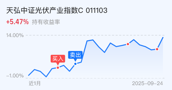 $天弘中证光伏产业指数C(OTCFUND|011103)$今天不动。