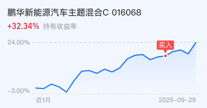 $鹏华新能源汽车混合C(OTCFUND|016068)$今天不动。