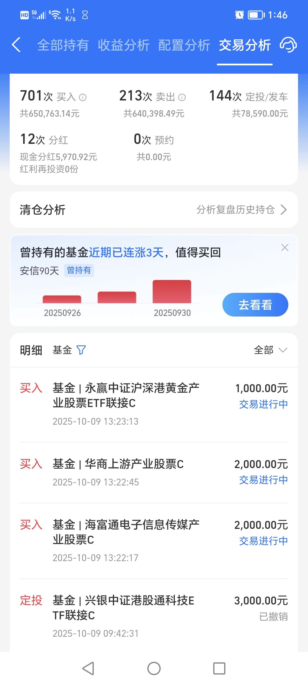 $永赢中证沪深港黄金产业股票ETF发起联接C(OTCFUND|020412)$今天加仓1000元。