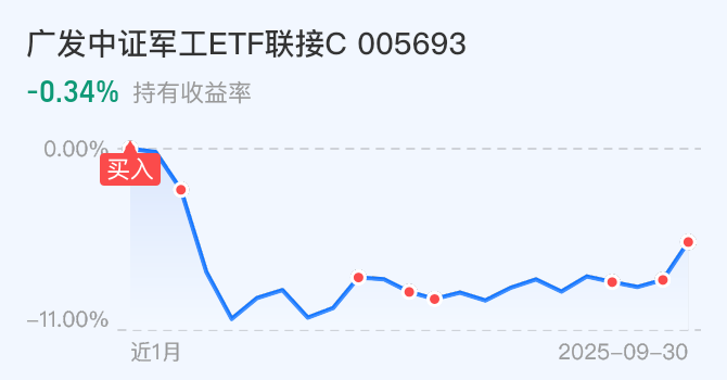 $广发中证军工ETF联接C(OTCFUND|005693)$今天不动。