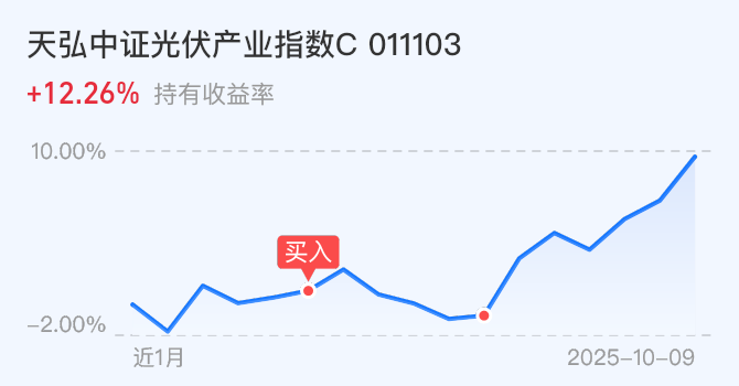 $天弘中证光伏产业指数C(OTCFUND|011103)$今天不动。