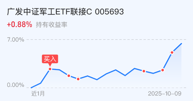 $广发中证军工ETF联接C(OTCFUND|005693)$今天不动。