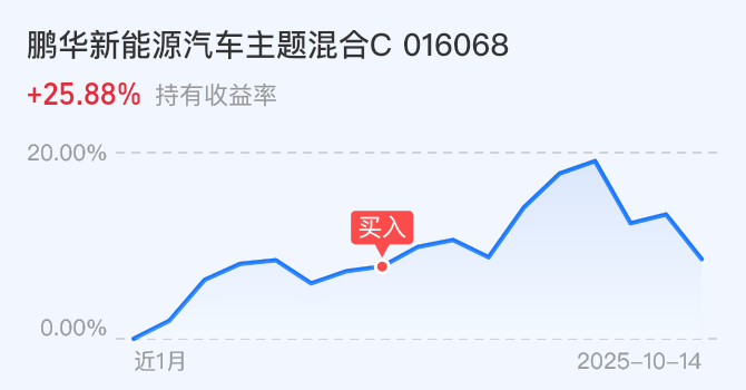 $鹏华新能源汽车混合C(OTCFUND|016068)$今天加仓500元。