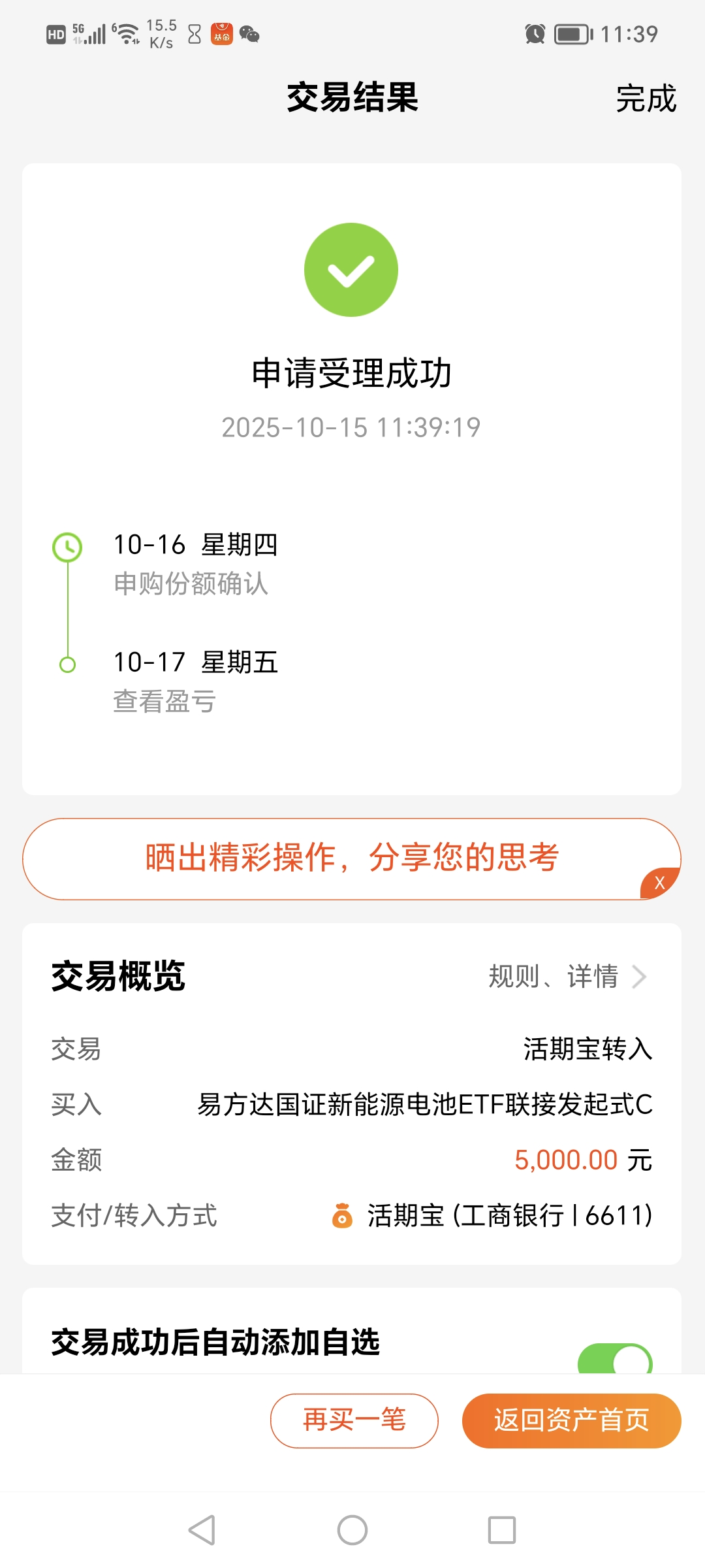 $易方达国证新能源电池ETF联接发起式C(OTCFUND|021034)$今天加仓5000元。