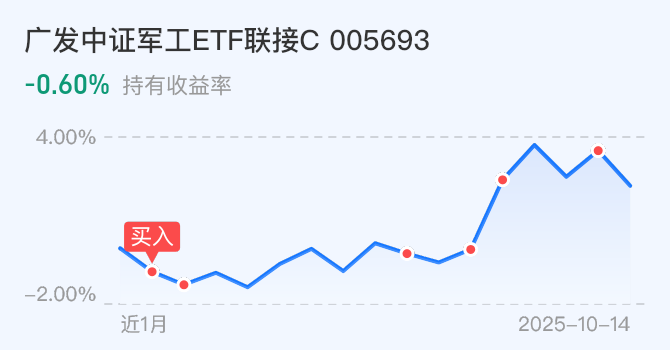 $广发中证军工ETF联接C(OTCFUND|005693)$今天不动。