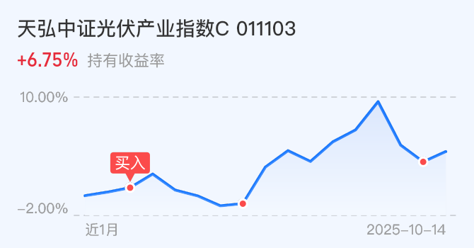 $天弘中证光伏产业指数C(OTCFUND|011103)$今天不动。