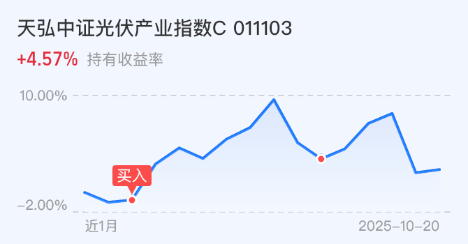 $天弘中证光伏产业指数C(OTCFUND|011103)$今天不动。