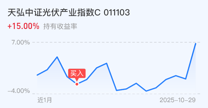 $天弘中证光伏产业指数C(OTCFUND|011103)$今天不动。