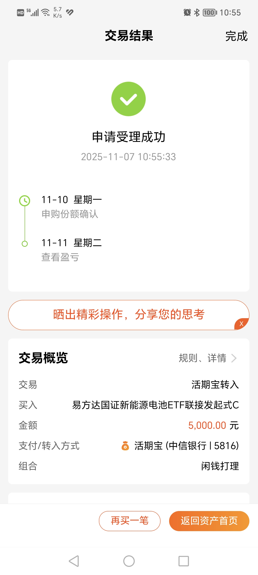 $易方达储能电池ETF联接C(OTCFUND|021034)$今天加仓5000元。