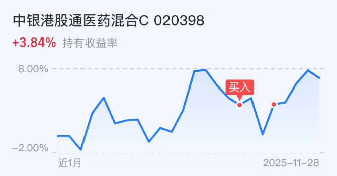$中银港股通医药混合发起C(OTCFUND|020398)$今天不动。