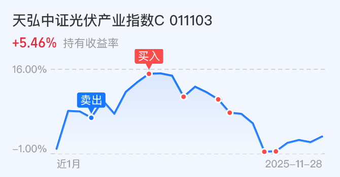 $天弘中证光伏产业指数C(OTCFUND|011103)$ 今天不动。