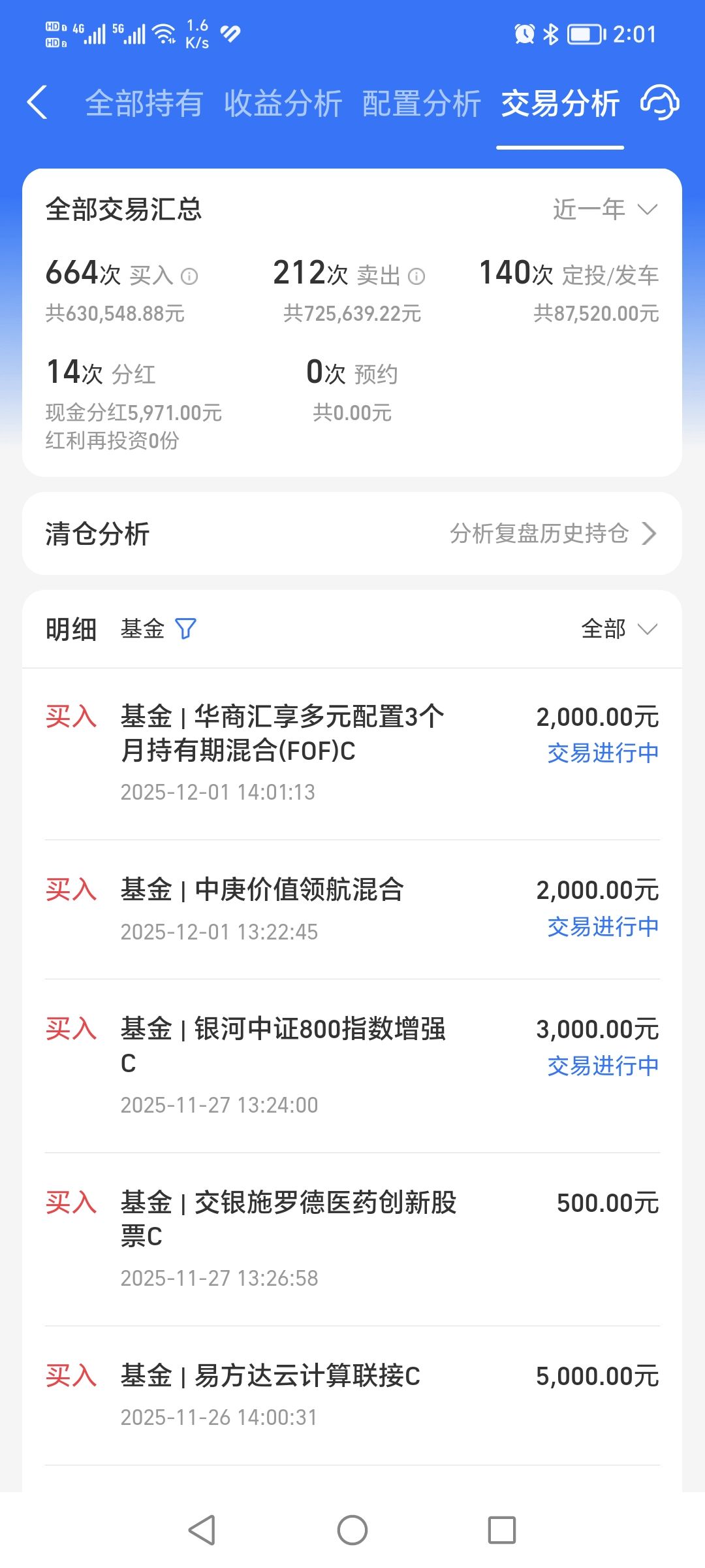 今天市场给我的感觉是居然涨起来了,上周不是缩量上涨吗?今天成交量好像放大了不少,也就是说资金开始回来了,我还注意到一个信号,中证金融公布的数据显示在11月25日当天,券商通过转融资,在中证金融处借入了114.3亿元的资金,这种情况不会经常发生,资金是否重新回来原来是不知道的,但今天放量了我认为可能性比较大。 既然市场有走好的可能,我就以10月17号作为箱底来锚定强弱。今天加仓中庚价值领航混合 2000元,这个品种属于低估值价值投资策略,注重基本面线索与估值安全边际的结合,关注资源板块的盈利能见度提升和中游化工行业的阿尔法机会。防守性强收益并不比人工智能这种纯进攻类低,特别适用现在窄暖还寒的市场环境。如果下一阶段市场风格并不是科技,过度配置科技就会跑输市场,中庚价值领航或许是就是一个方向。