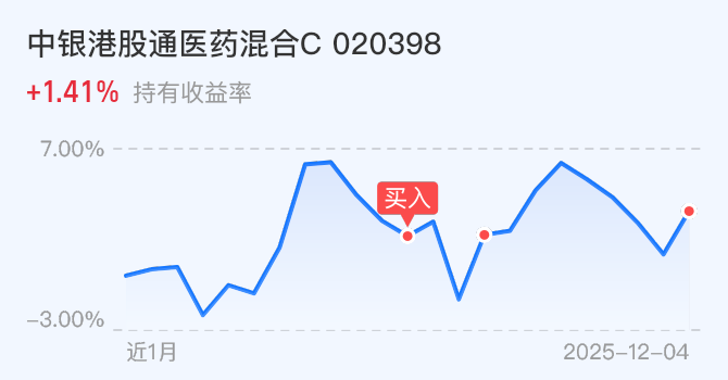 $中银港股通医药混合发起C(OTCFUND|020398)$今天不动。