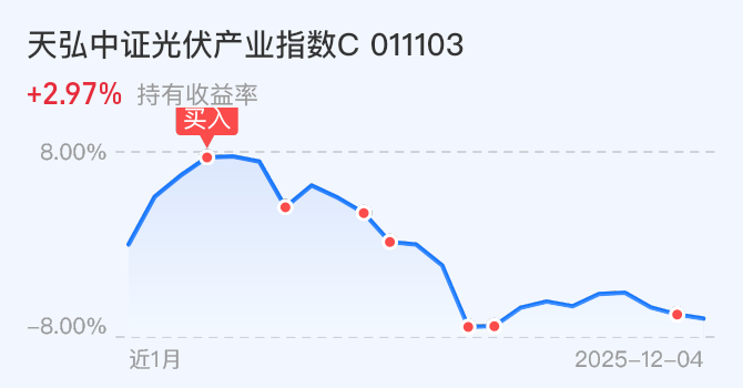 $天弘中证光伏产业指数C(OTCFUND|011103)$ 今天不动。