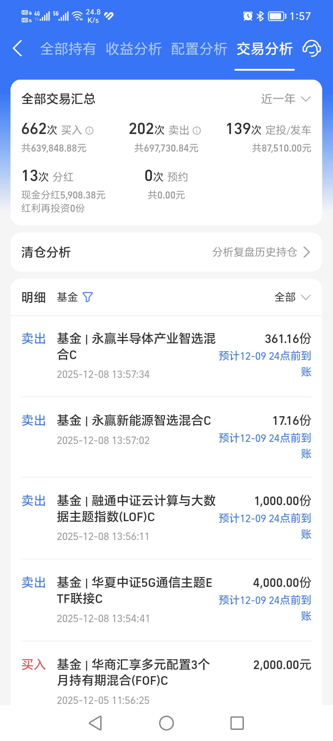 $华夏中证5G通信主题ETF联接C(OTCFUND|008087)$今天止盈4000份。