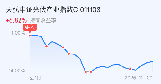 $天弘中证光伏产业指数C(OTCFUND|011103)$ 今天不动。