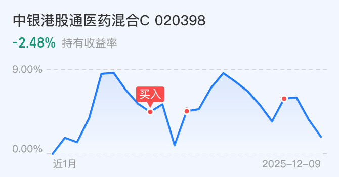 $中银港股通医药混合发起C(OTCFUND|020398)$今天不动。