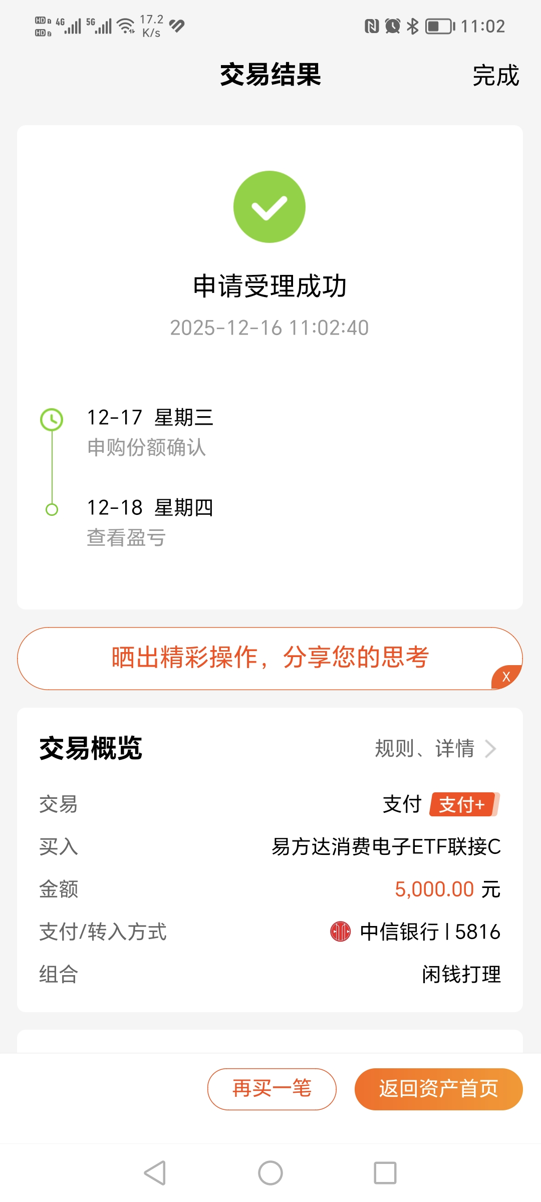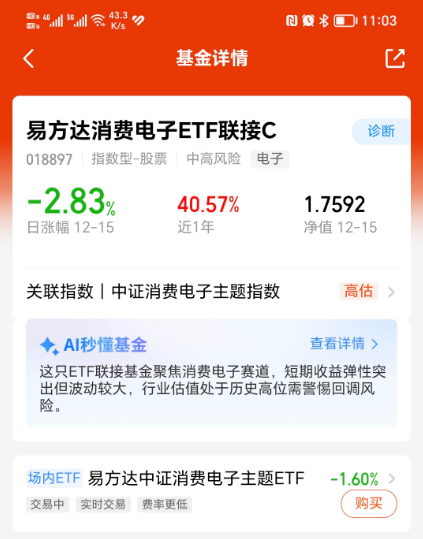 $易方达消费电子ETF联接C(OTCFUND|018897)$今天加仓5000元。