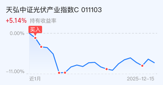 $天弘中证光伏产业指数C(OTCFUND|011103)$ 今天不动。
