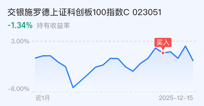 消息显示沐曦明天上市科创板创新层,经过摩尔线程的刺激,我认为科技依然是当下市场的主线,最直接受益的应该是科创板,今天全市场走势依然偏弱,科创100继续回落重回12月3号的短周期箱底,无论是技术面,消息面来看,这个位置的支撑是比较大的,当下震荡正好提供了一个很好的潜伏机会。今天加仓交银施罗德上证科创板100指数C 2000元,这个品种跟踪标的是上证科创板100指数,主要聚焦半导体、电子、医药生物等科技成长性较高的行业,具有很好的成长性。短期市场的分歧并不改中期的大趋势,加上近期科技题材轮动很快,可控核聚变、商业航天、芯片制造始起彼复,交银施罗德上证科创板100指数C一键打包高成长题材,就比较省心了。今天趁着指数回调,继续加大投入,坚定看好科创方向。