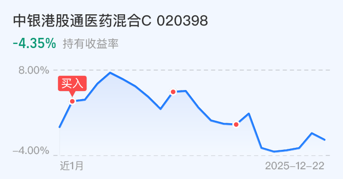 $中银港股通医药混合发起C(OTCFUND|020398)$今天不动。