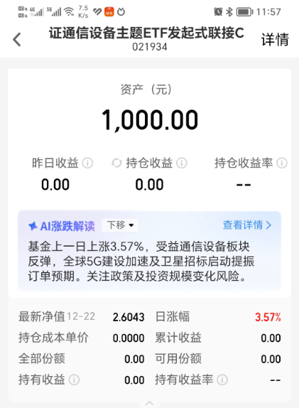 $永赢国证商用卫星通信产业ETF发起联接C(OTCFUND|024195)$今天加仓1000元。