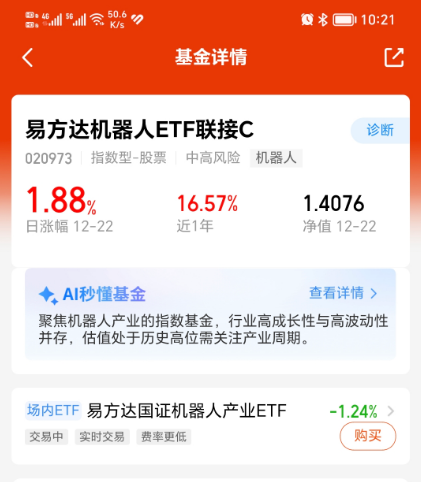 今天加仓易方达机器人ETF联接C 5000元,这个品种对标国证机器人产业指数,跟踪误差低,华鑫证券指出2025年国内具身机器人订单呈现量额齐升,人形机器人行业正加速从技术研发向规模化商用落地迈进。近期我也参加了科技线的天天调研团,也很认同人工智能的发展对机器人产业的巨大潜力,种种信号表明,经过持续回调后的机器人,估值已经相对吸引,虽然不知道主力何时启动,在低位布局的性价比还是挺大的,趁着今天倒车接人,我先上车试试水好了。