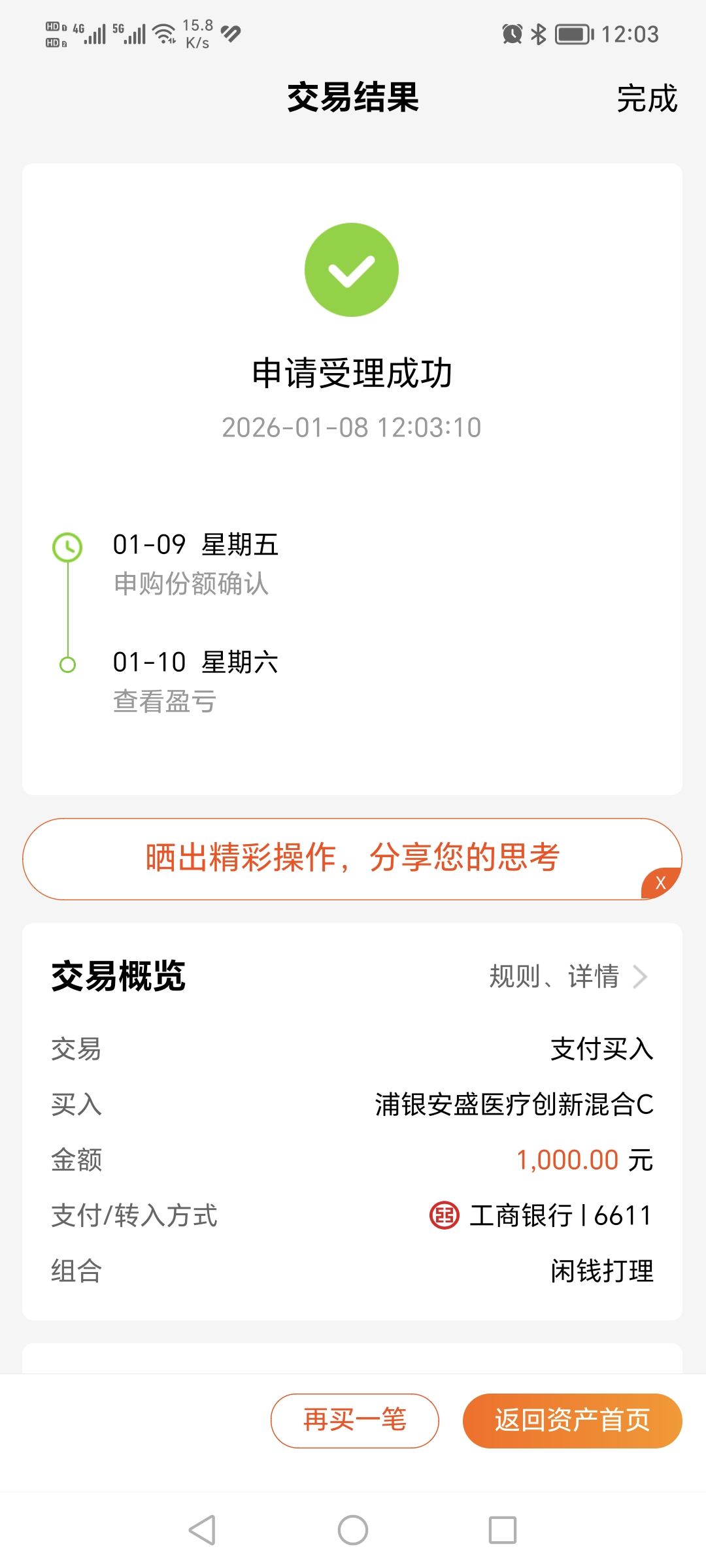 $浦银安盛医疗创新混合C(OTCFUND|025023)$ 今天加仓1000元