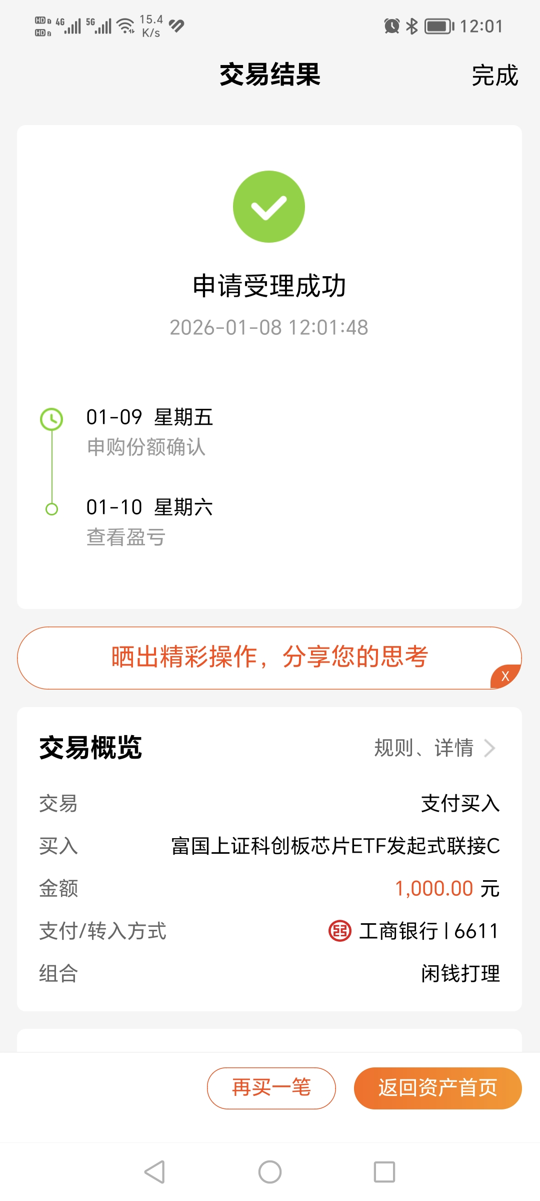 $富国上证科创板芯片ETF发起式联接C(OTCFUND|023652)$今天加仓1000元
