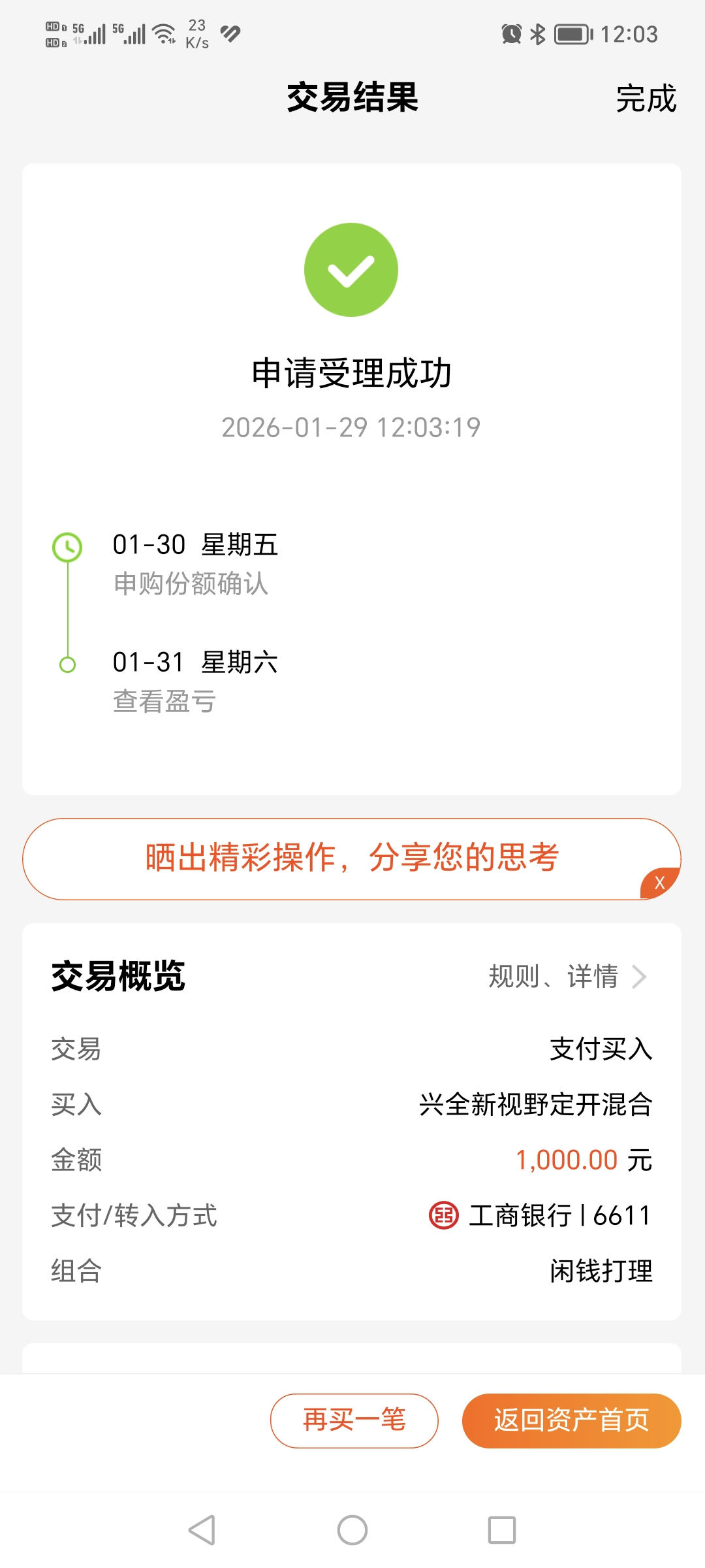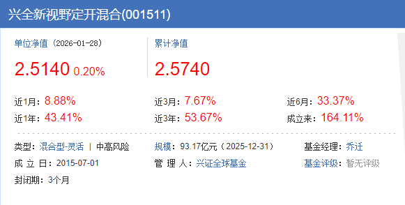 $兴全新视野定开混合(OTCFUND|001511)$今天加仓1000元。