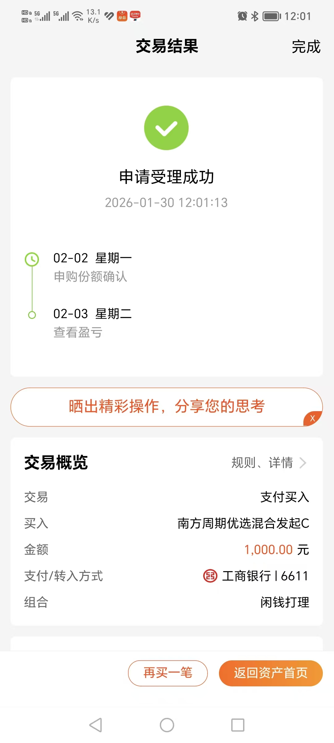 $南方周期优选混合发起C(OTCFUND|021712)$今天加仓1000元
