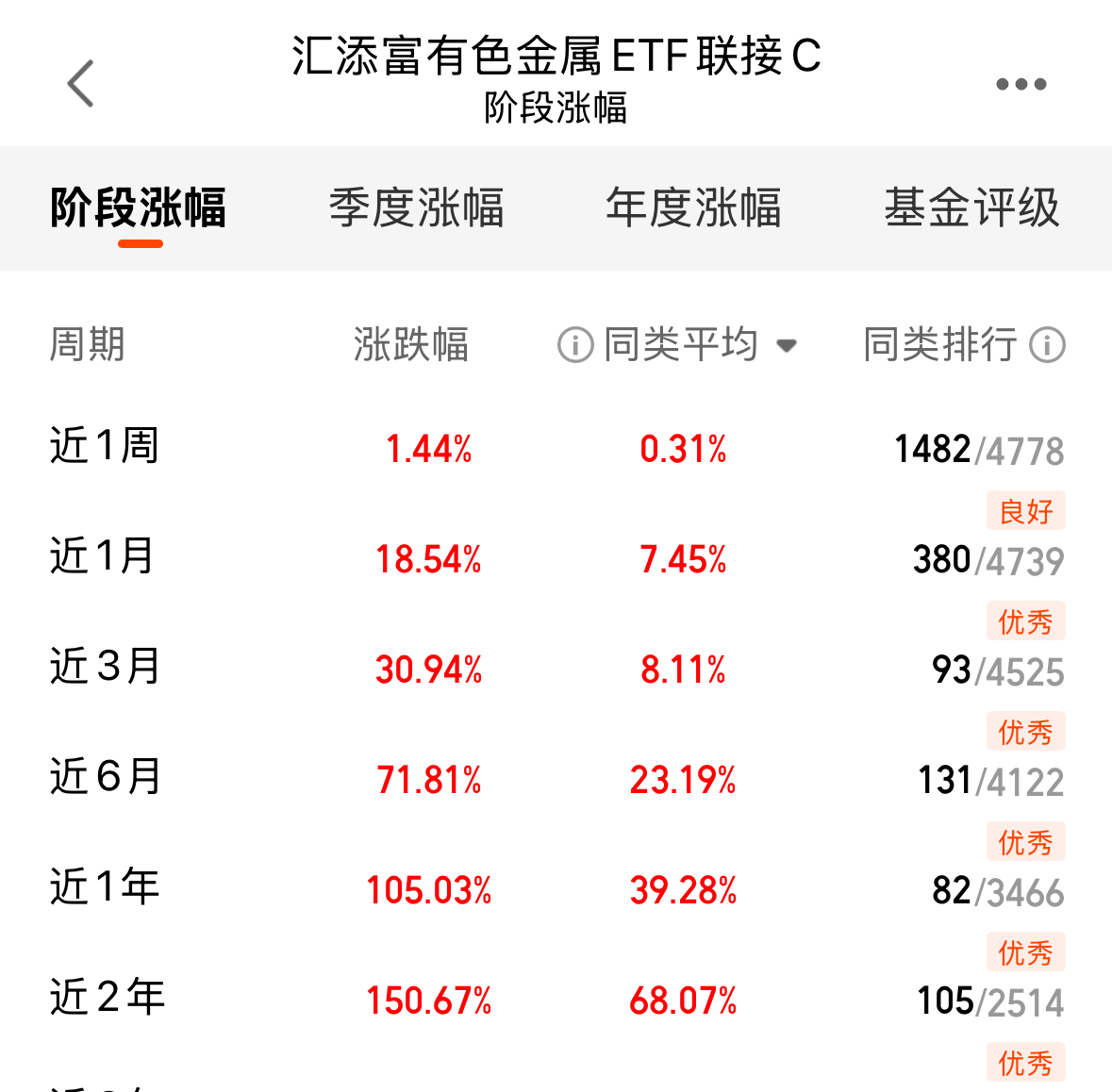 总而言之,白银爆发就是有色超级周期的一个缩影,不想踏空这场盛宴我觉得被动跟踪中证细分有色指数的 $汇添富有色金属ETF联接C(OTCFUND|019165)$(019165)就是一个不错的工具。