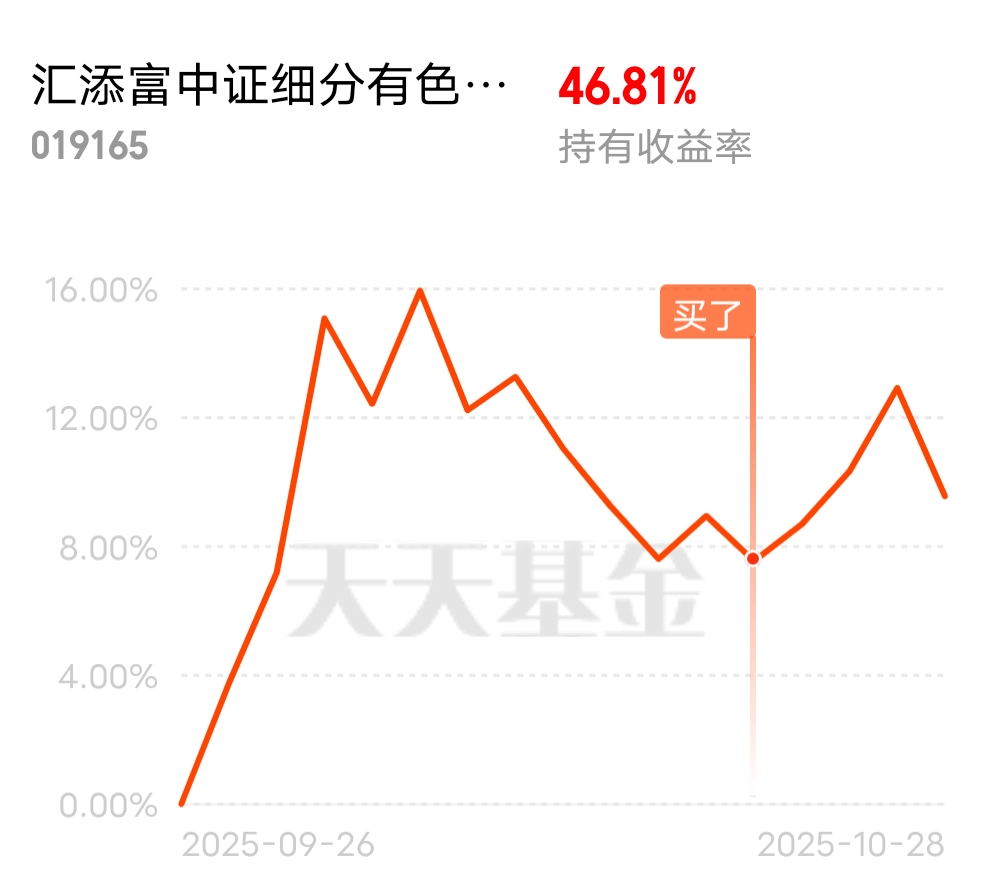 $汇添富中证细分有色金属产业主题ETF发起式联接C$调整修复得差不多了,继续加油