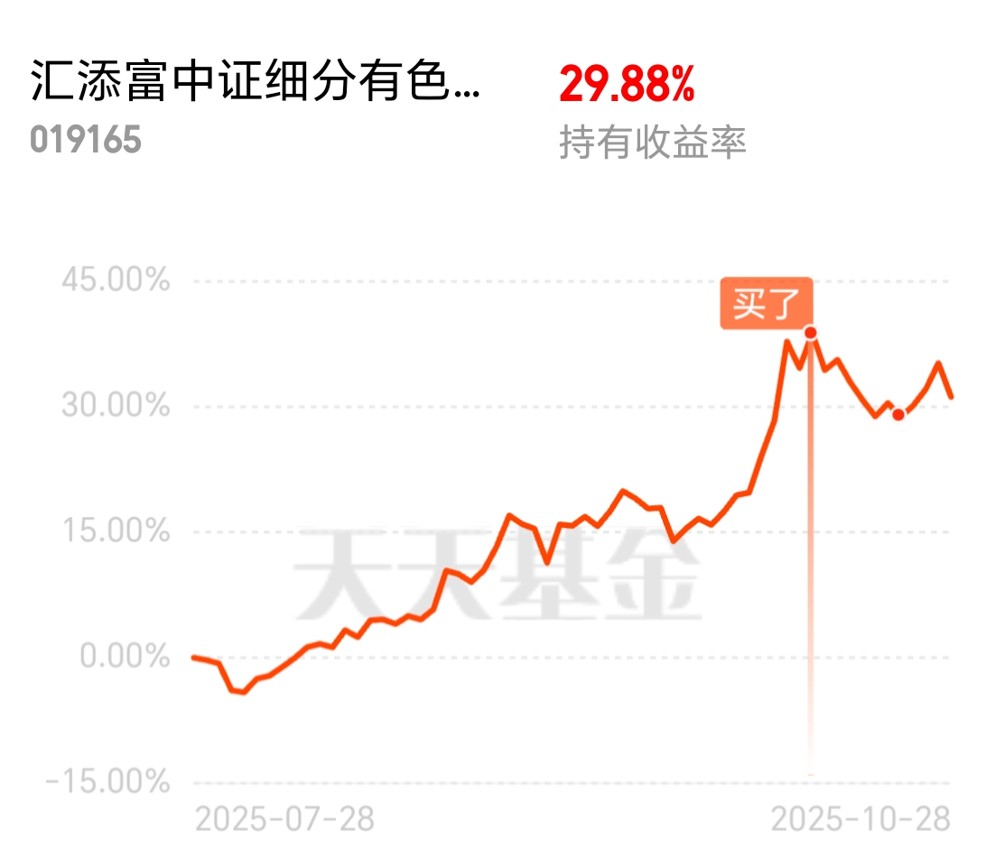 $汇添富中证细分有色金属产业主题ETF发起式联接C$短暂回调了一天,今天继续大涨