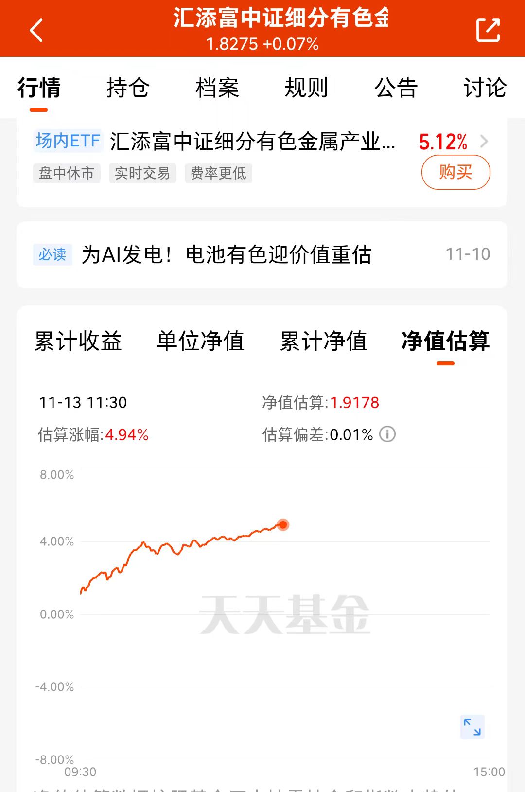 虽然这个月股市开门红后还是延续了上个月的震荡行情,不过震荡也没那么明显了,隐约有企稳的态势呢。大家最近更多关注哪个板块呢。近期科技主线调整,细分又多,板块难免分化。但是我发现有色金属板块来接力了。近期涨幅明显拉升。我是选了含铜量更高的$汇添富中证细分有色金属产业主题ETF发起式联接C(OTCFUND|019165)$上车的,他不仅含铜量高,还有高达14%的黄金,这两个占比高,所以涨幅都比其他指数好呢,我目前收益率已经到了3.62%,持仓体验不错呢。在中美博弈升级的背景下,有色金属的金融属性和战略价值双向强化,中长期供需格局与价值重估逻辑清晰,我也打算继续布局这个赛道。