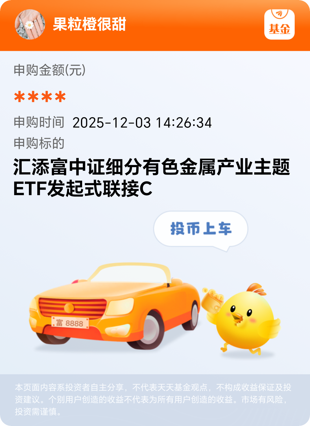 有色右侧机会来了!近5天涨4天,趋势比科技成长还稳。买有色就看含铜量,$汇添富中证细分有色金属产业主题ETF发起式联接C$ 这只含铜30%、黄金14%,都比同类高,继续加码了#12月基金投资策略#