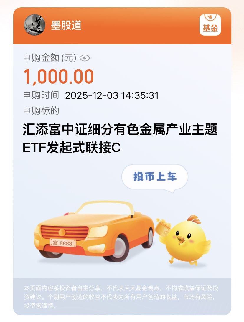 有色资源是大国竞争的重要筹码,战略地位越来越高,而且国内矿企估值比海外低 20%-50%,安全边际很足,整体趋势向好。$汇添富中证细分有色金属产业主题ETF发起式联接C(OTCFUND|019165)$亮点超突出,含铜量高达 30%、黄金 14%,比同类有色指数高不少,既沾了铜的周期红利,又有黄金的避险属性。近三个月涨 16.14%、近六个月涨 61.13%,业绩很亮眼,我现在准备跟着上车,慢慢积累一定的筹码,还是很期待后期行情。$嘉实中证稀土产业ETF联接C(OTCFUND|011036)$