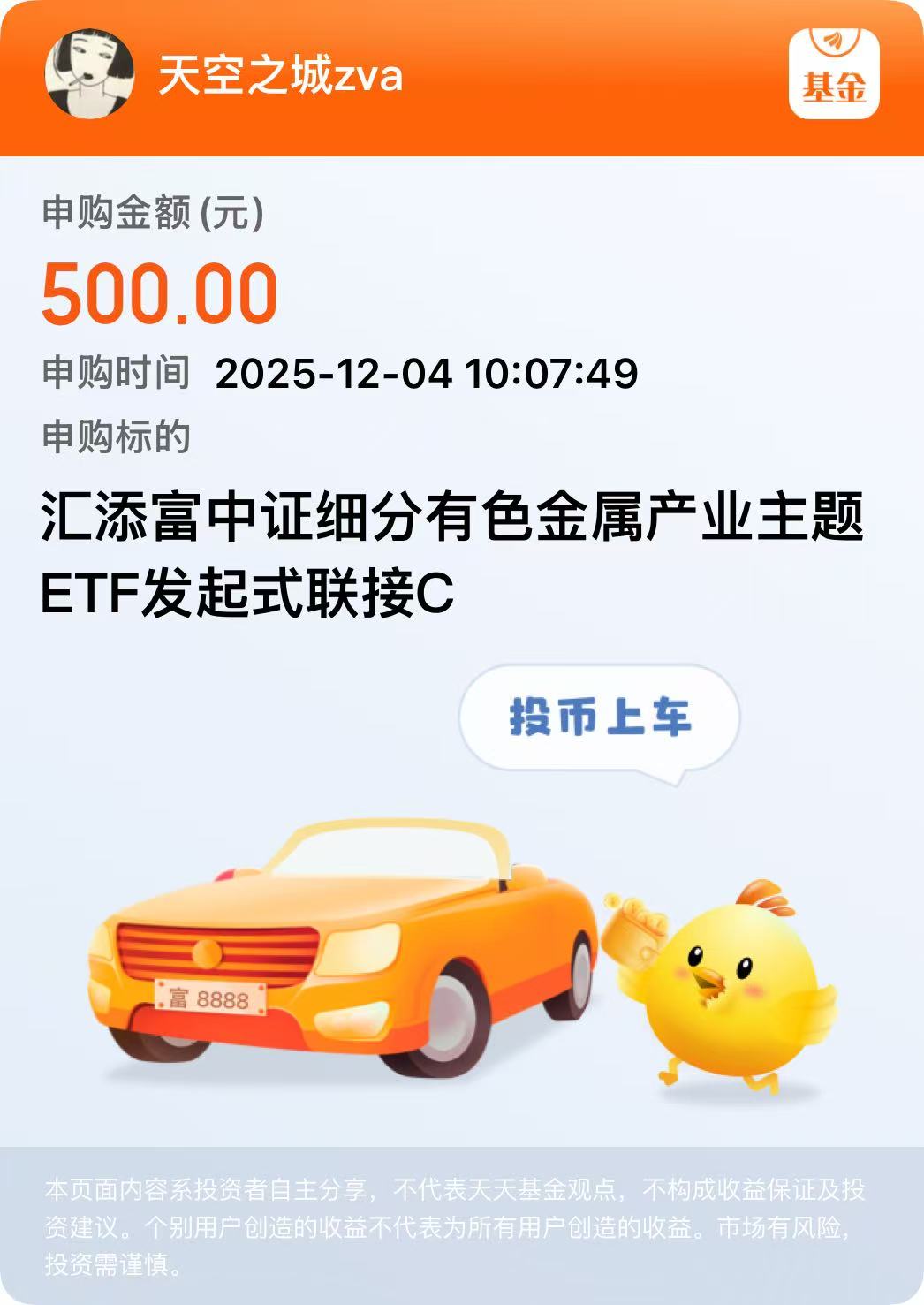 今天我建仓买入$汇添富中证细分有色金属产业主题ETF发起式联接C(OTCFUND|019165)$