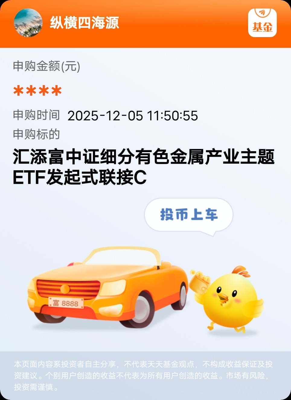 $汇添富中证细分有色金属产业主题ETF发起式联接C$继续加仓跟进,有色金属后市可