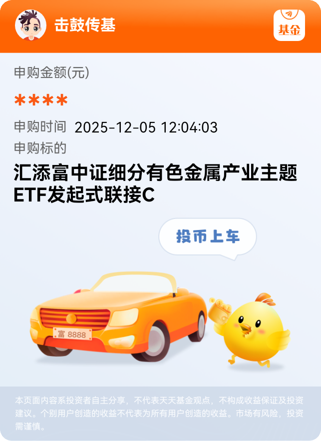 $汇添富中证细分有色金属产业主题ETF发起式联接C$ 右侧交易走起,牛市不言顶#摩尔线程开盘价650元!一签赚超26.7万#