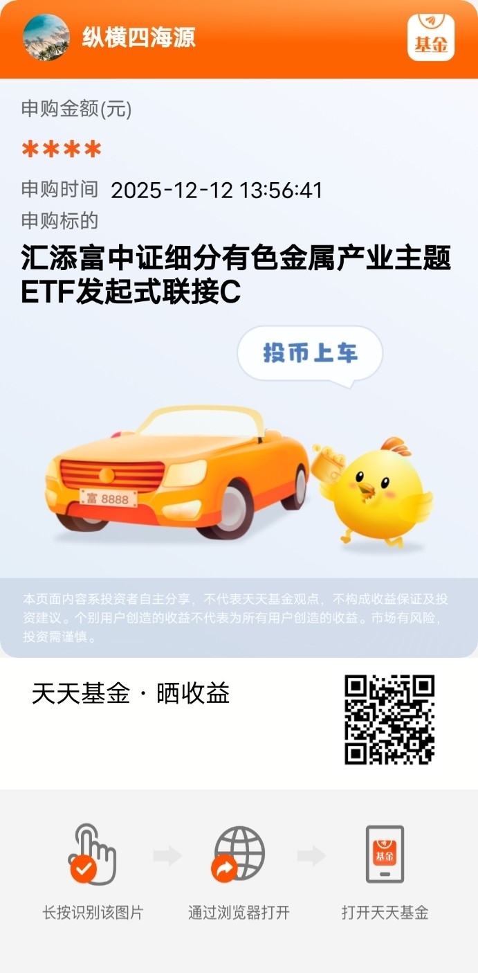 $汇添富中证细分有色金属产业主题ETF发起式联接C$继续为有色金属加油助力一波就好啦