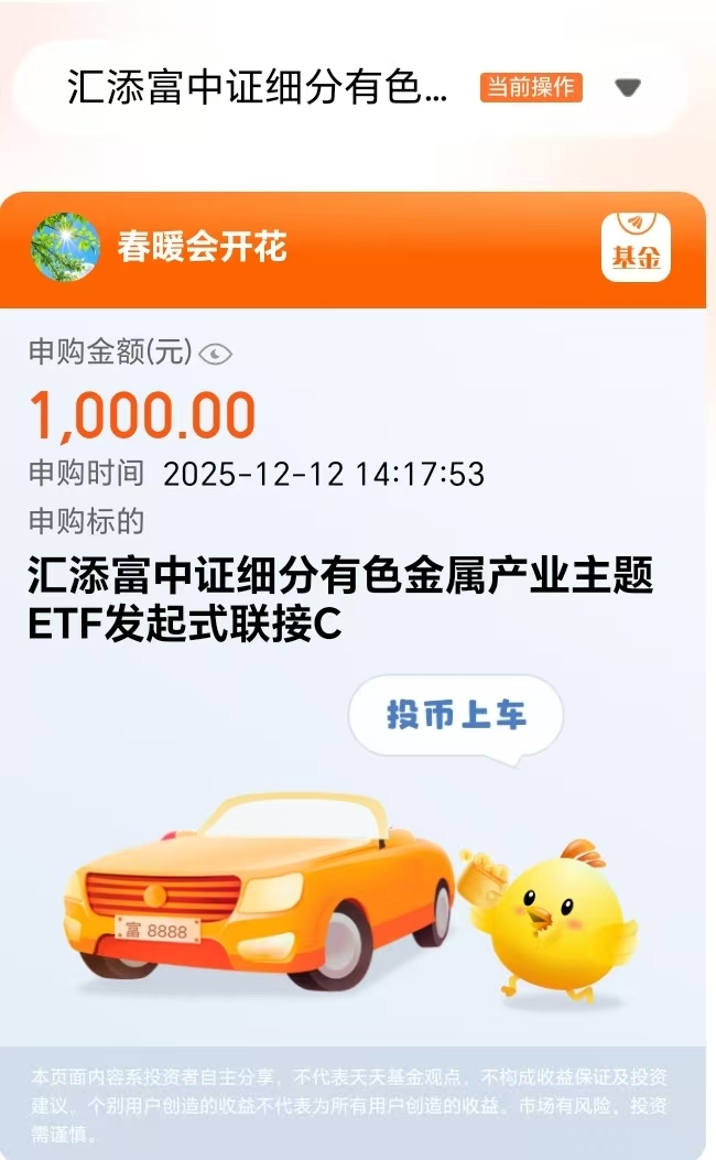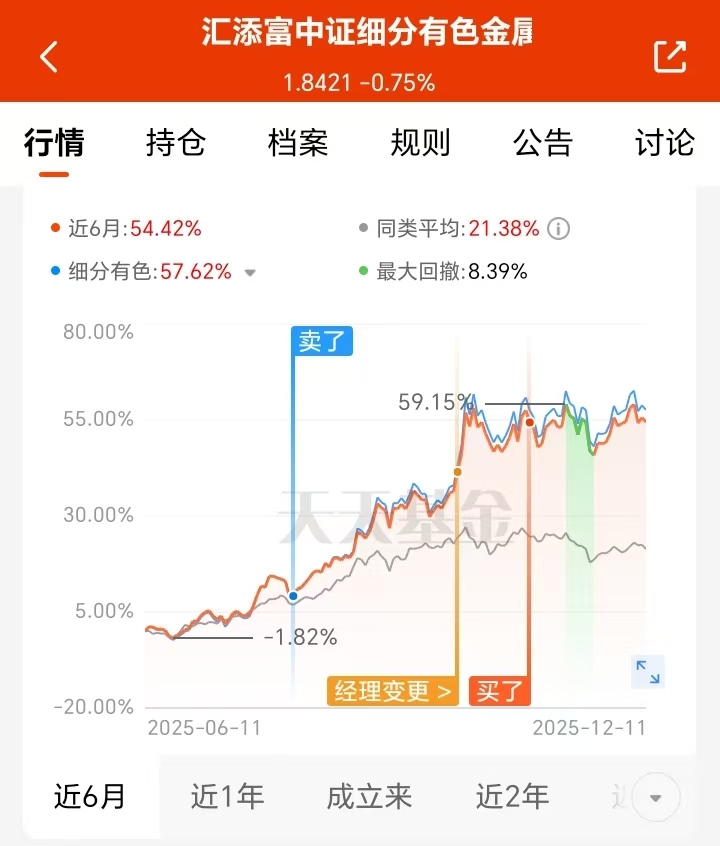 我手里的$汇添富中证细分有色金属产业主题ETF发起式联接C(OTCFUND|019165)$盘中上涨0.91%,又稳稳吃到肉啦!它覆盖了铜、稀土、锂这些核心赛道,紫金矿业、北方稀土这些龙头股都在持仓里,尤其是含铜量高达30%、黄金含量14%,比同类有色指数高不少呢,今天贵金属也是强势大涨直接带动它!这基是真的能打,近三个月涨15.37%,近半年涨了54.42%,显著跑赢同类。