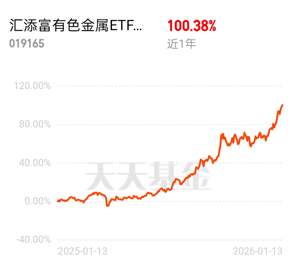 说到板块,看好黄金和有色金属,+500,$汇添富有色金属ETF联接C$ ,近一个月涨近19%,近一年涨超100%。